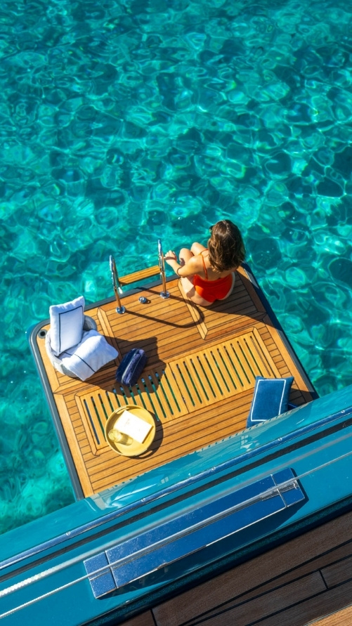 Dotato di doppia timoneria e pannelli solari, il flybridge è anche un luogo di espressione personale: può essere allestito secondo i tuoi desideri per creare uno spazio adatto a te.