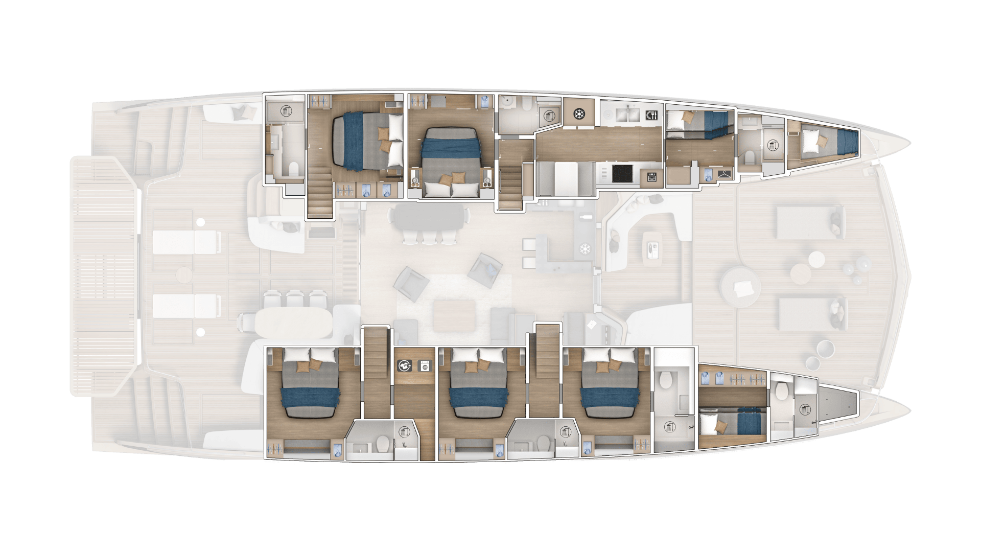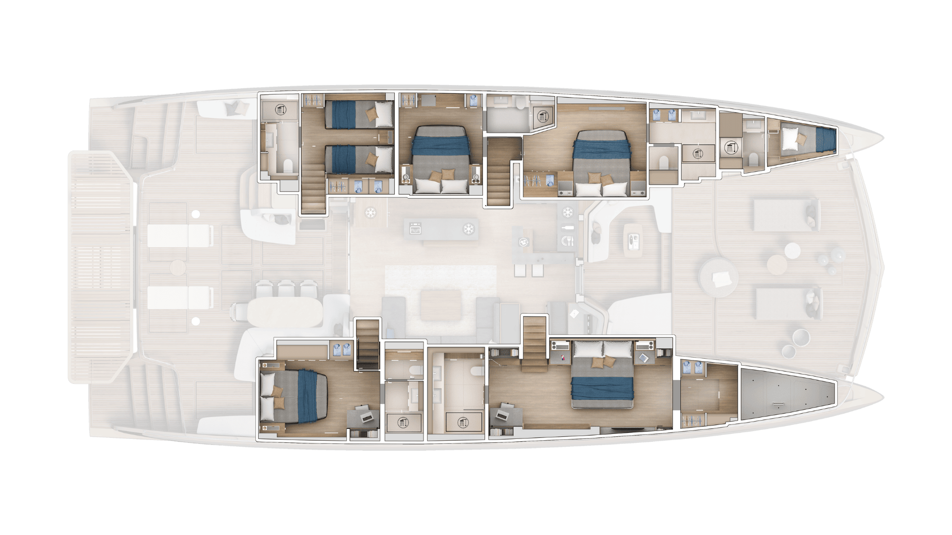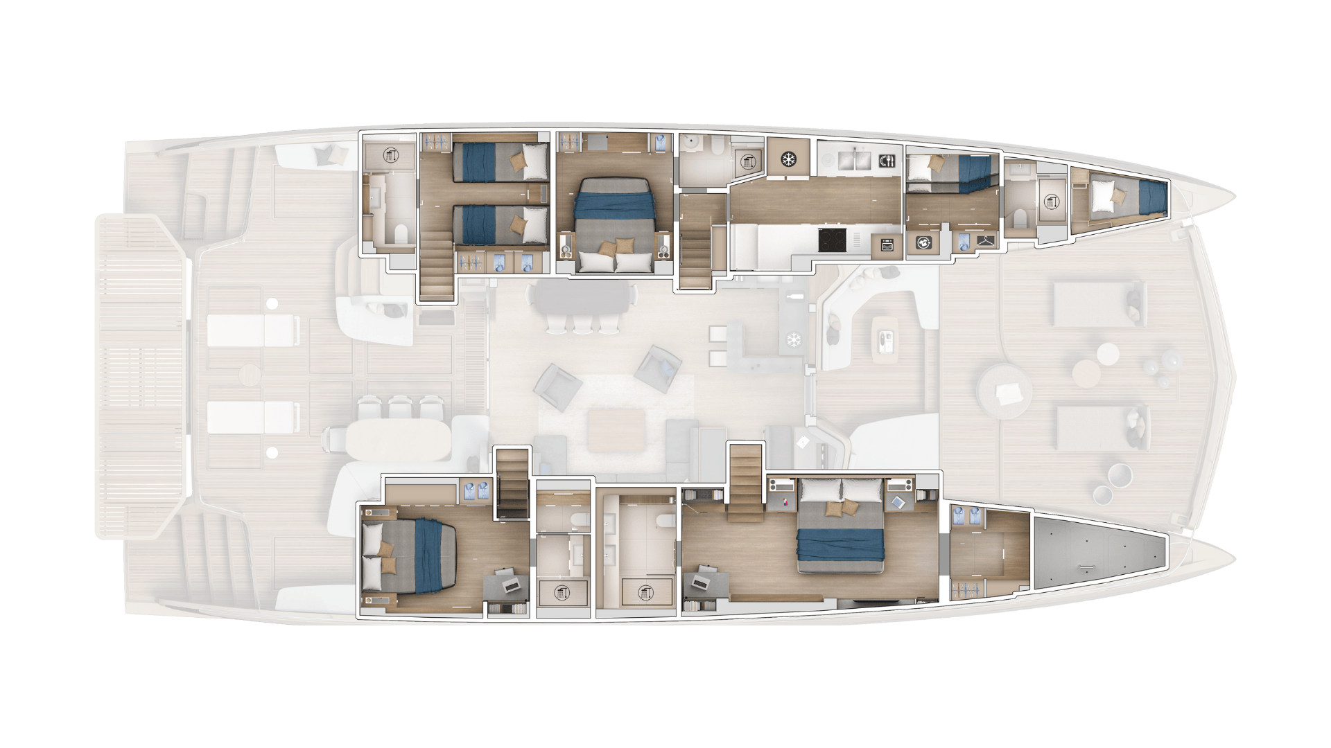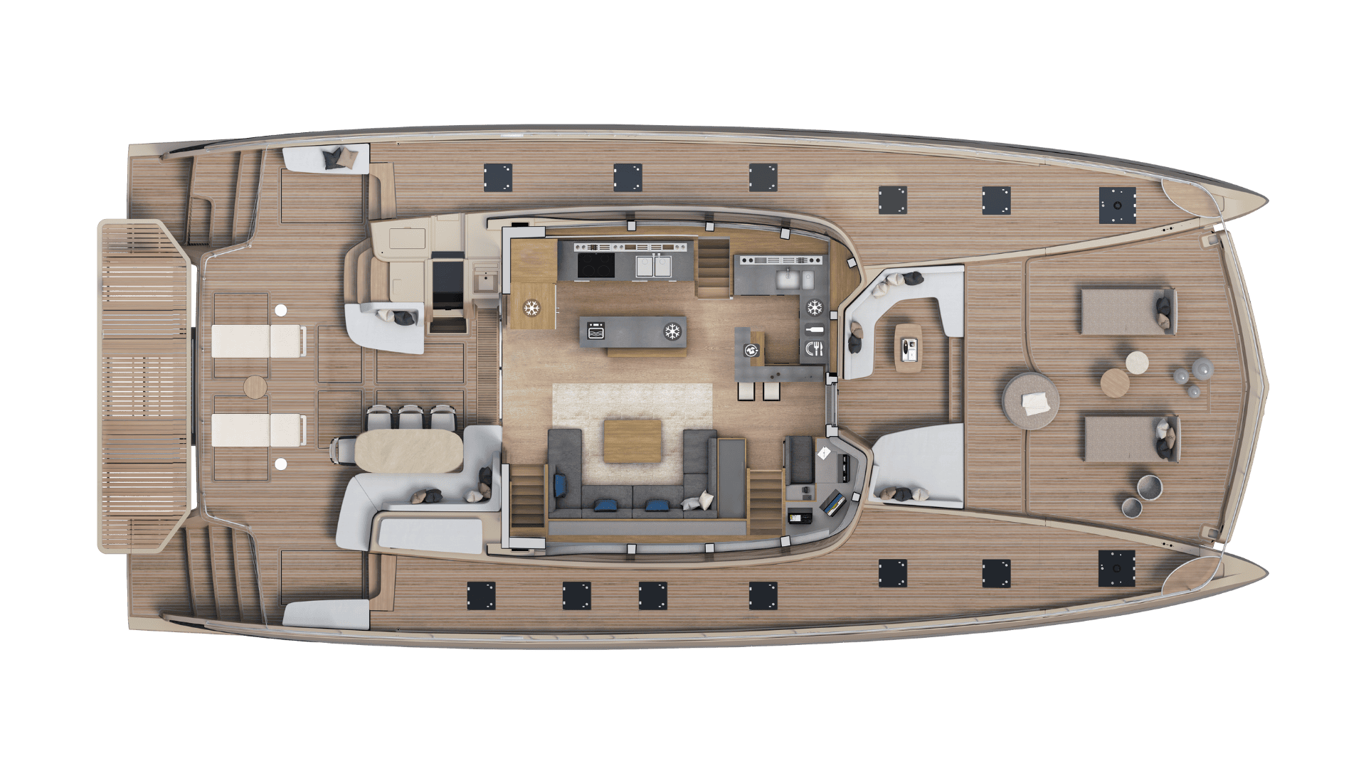 Il suo design promette 300 m² di spazi esterni dedicati al relax, con in particolare nella parte posteriore una piattaforma fino a 22 m².